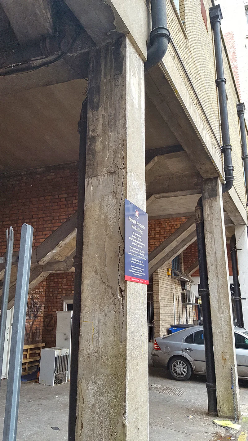 This project involved urgent concrete repair to a structural column supporting St. Peter’s Hospice in central Bristol. Due to the location and public foot traffic, we were required to isolate the area, ensure safe access, and carry out thorough investigation and remedial works without compromising the surrounding structure or public safety. The challenge centred around safely exposing and repairing a severely compromised load-bearing column.